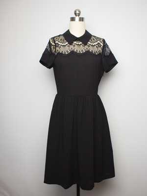 法国高级时装M*RGAN黑色礼服裙短袖连衣裙蕾丝拼接收腰复古小黑裙