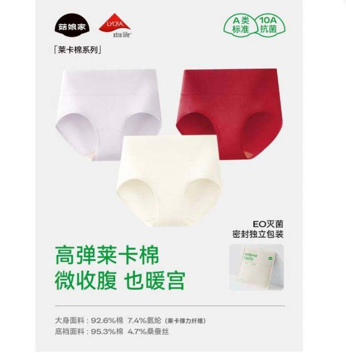菇娘家莱卡棉高腰收腹内裤女纯棉10A抗菌大码新款女士女生三角裤