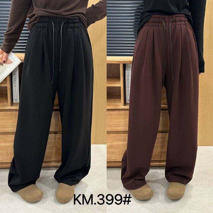 2024秋冬厚新款卡麦399抽绳松紧高腰宽松显瘦垂感休闲百搭阔腿裤