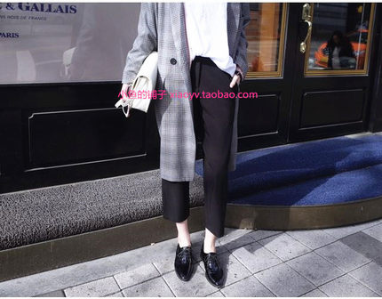 韩国原单真品复古高腰超棒面料阔腿裤休闲哈伦裤九分裤黑色特