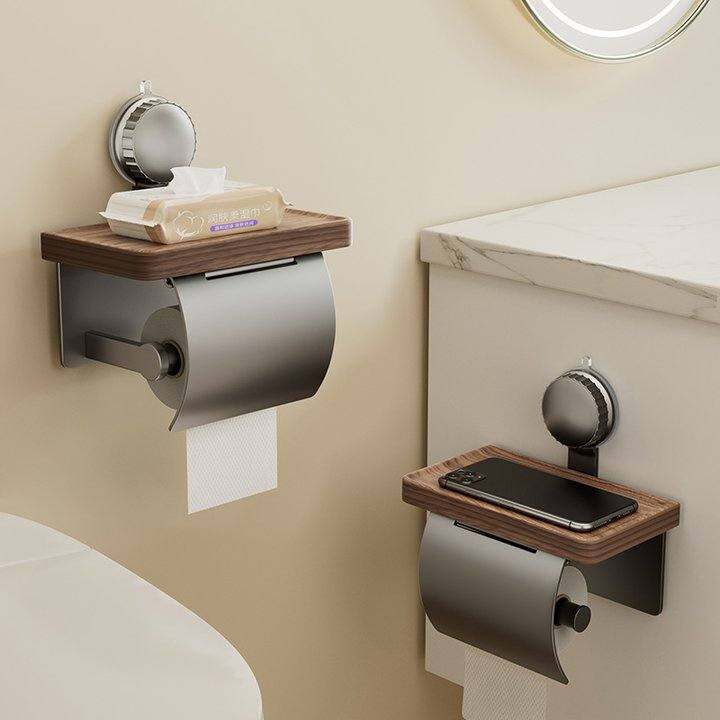 映生活吸盘胡桃木纸巾架卫生纸盒壁挂式置物架厕所卫生纸巾盒卷筒卫生纸架