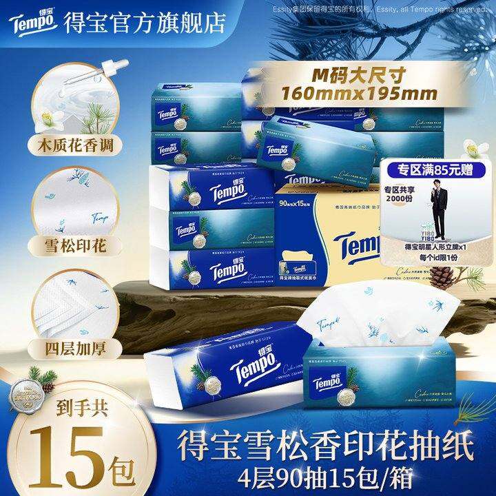 [王一博同款]tempoTempo雪松之境4层加厚90抽任选家用卫生纸抽取式卫生纸