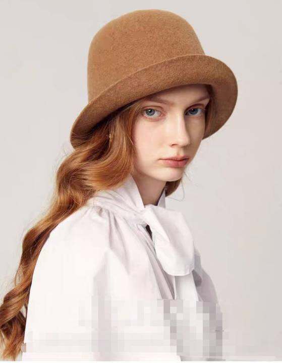 Sp秋冬显脸小羊毛两用可翘边小圆帽优雅百搭圆顶毛呢盆帽女渔夫帽