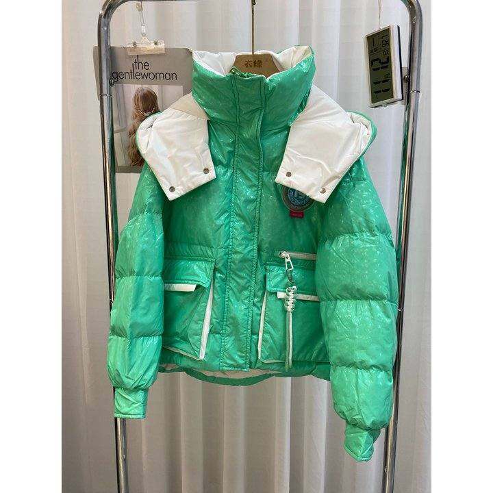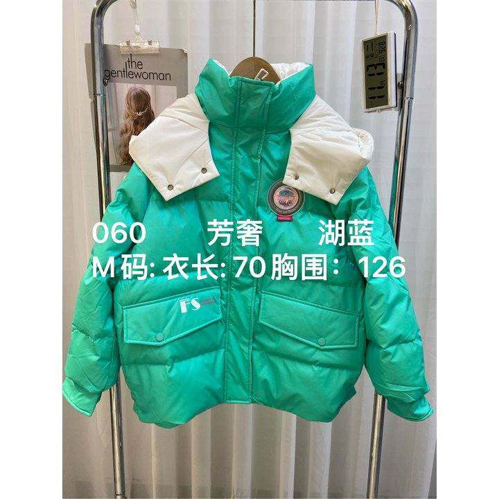 撤柜冬季加厚短款绿色j060新款贴标连帽鹅绒大口袋拉炼羽绒服