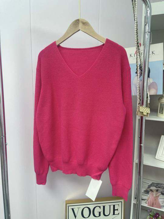 70054品牌撤柜春秋季净色V领软糯针织衫气质百搭套头内搭宽松毛衣