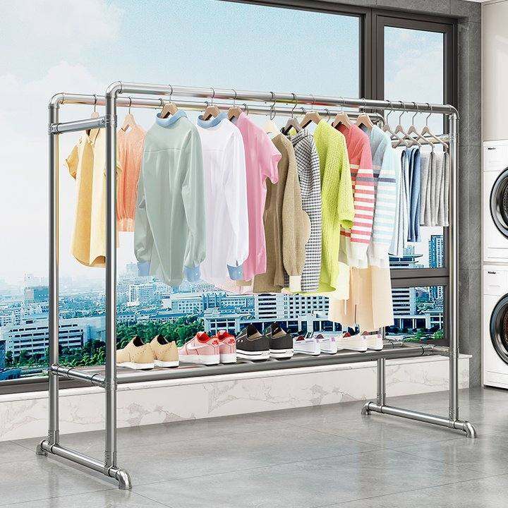 钢管晾衣架落地阳台家用挂衣架户外室外晒被子简易双杆水管凉衣架