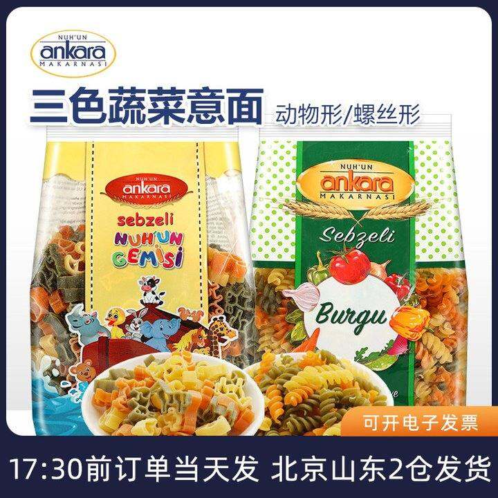 安卡拉三色蔬菜动物卡通意面螺旋意大利面意粉家用早餐速食面条
