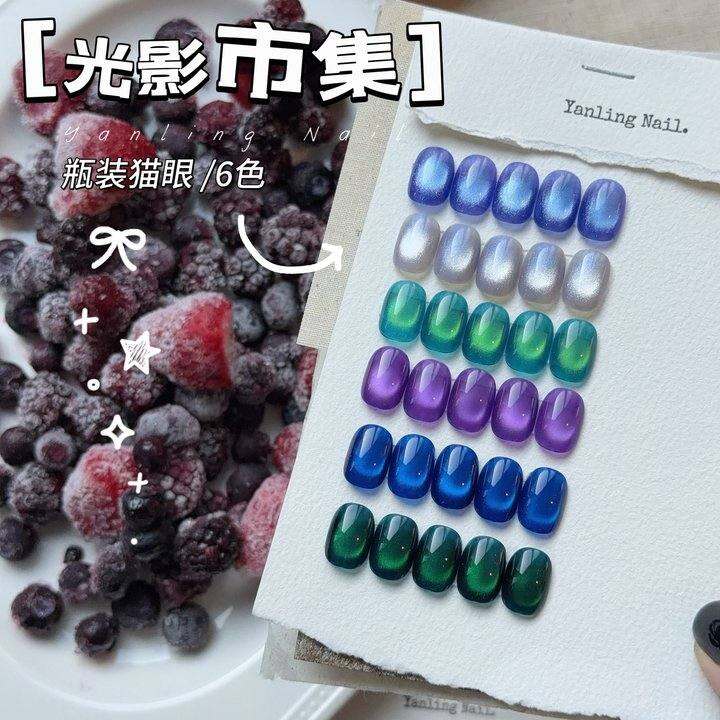 燕翎甲油胶光影市集猫眼胶哲学家紫色美甲胶深蓝色爆闪猫眼甲油胶