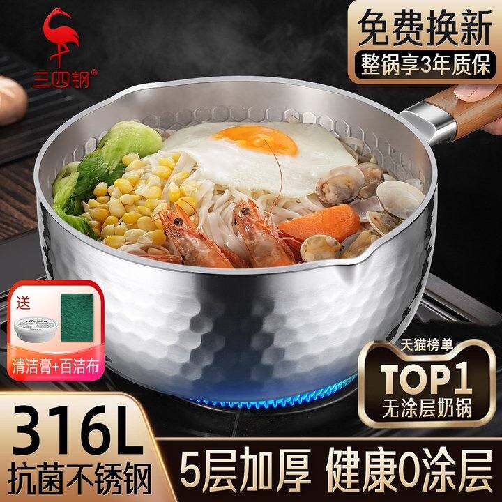 三四钢316L无涂层雪平锅加厚不锈钢小奶锅日式副食品蒸煮泡面 面锅汤锅