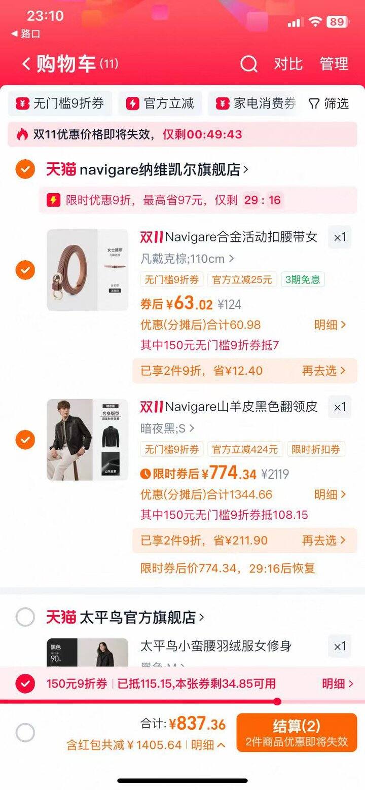 3、凑单满2000,尽量选择参加2件9折的品