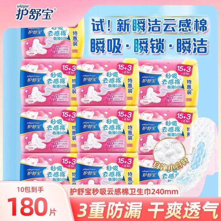 护舒宝云感棉卫生巾批发棉柔官方旗舰店超薄日用姨妈巾整箱组合装