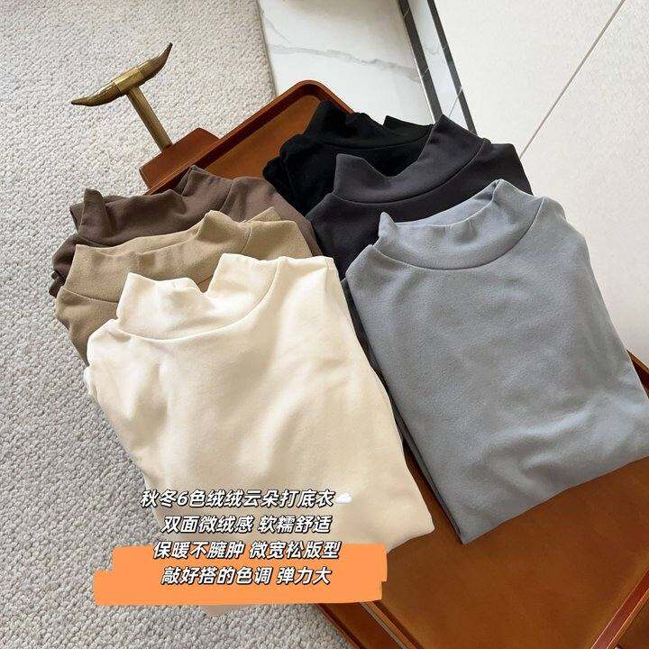 软糯磨毛打底衣!秋冬保暖立领温柔长袖纯色内搭t恤上衣女
