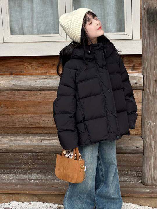 韩国儿童羽绒服2025冬新款男女童加厚保暖90白鸭绒连帽面包服外套