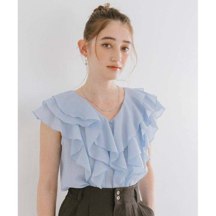 日单 25春夏 l0unie 甜美减龄百搭叠层荷叶边V领小飞袖衬衫 8028