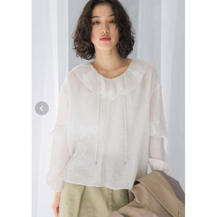 日单urb@ research ross0杨柳荷叶领女款衬衫