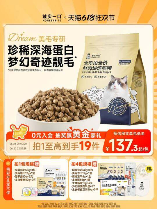 【重磅新品】诚实一口奇迹小金袋美毛亮毛专研全鲜肉鸡肉烘焙猫粮