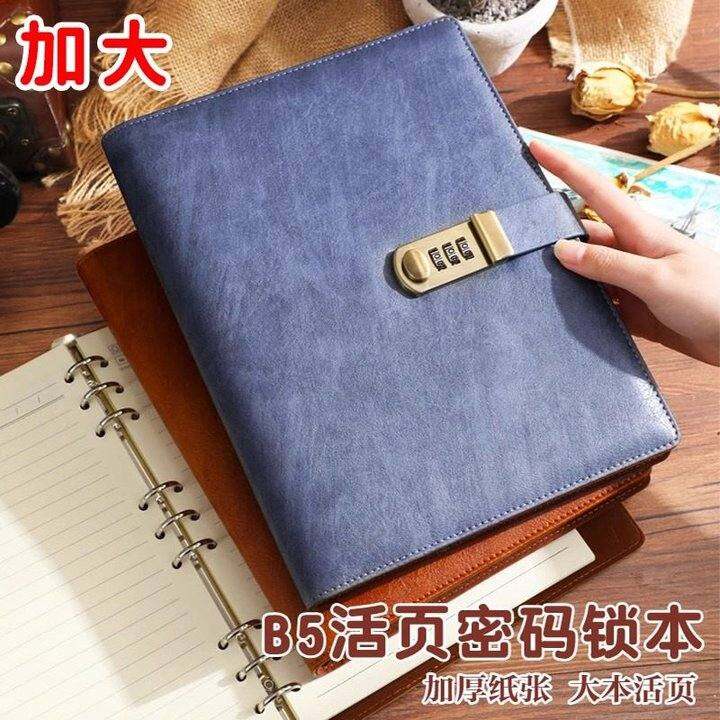 B5日记本大号加厚活页密码本带锁可拆卸笔记本简约创意礼盒高颜值本子覆古记事本A5手帐本高级定制可印logo