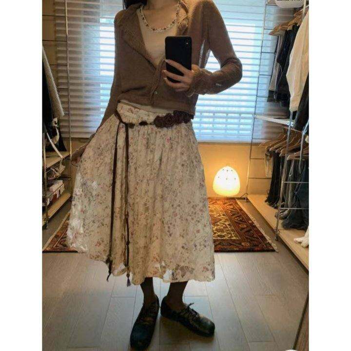 【MY档口】35%天丝·烧毁烂花工艺拼接蕾丝双层半身裙女A字裙长裙