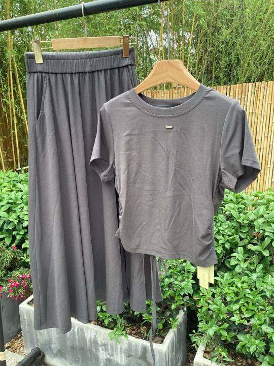 套装25夏新款时尚百搭显瘦圆领短袖上衣+半裙显瘦包容性强6287