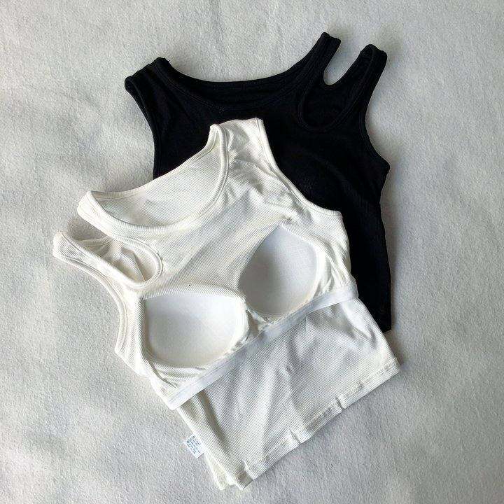 A10277罗纹修身瑜伽露肩背心带胸垫夏季罩杯文胸胸罩bra一体式