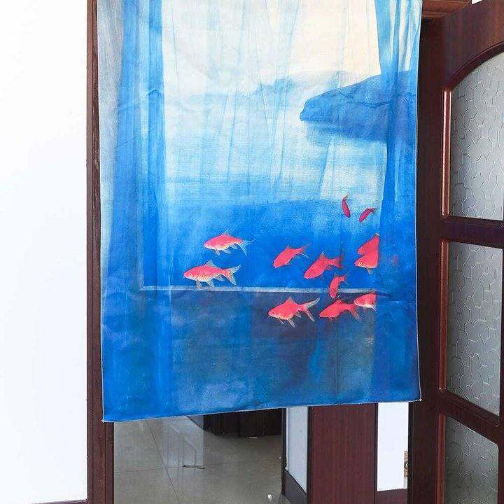 xhs蓝色延伸感挂布 唯美梦幻假窗户窗帘画 卧室房间装饰背景布