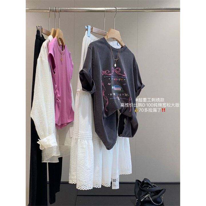 IN BLUE 青岛韩单代工厂!重工刺绣款100纯棉少女心减龄短袖T恤女