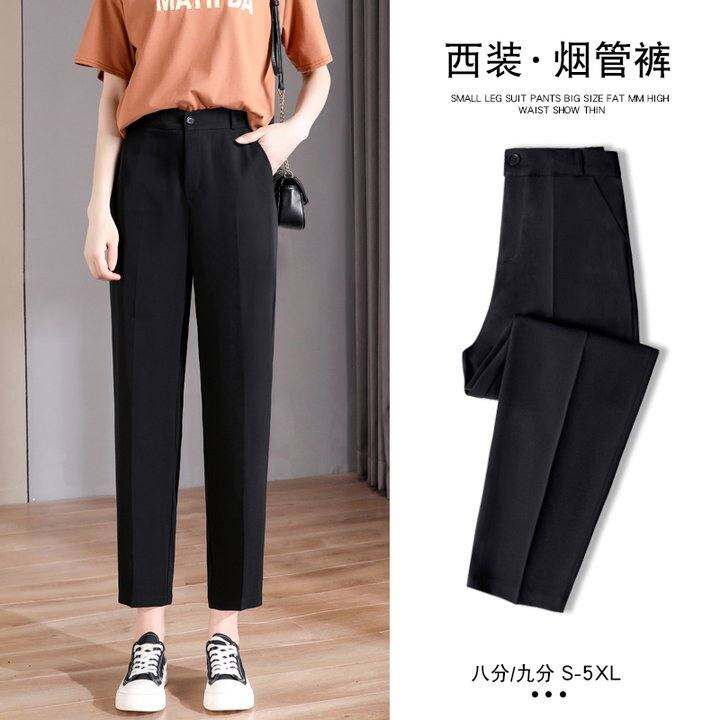 黑色西装裤女夏季薄款2025新款垂感直筒阔腿九分小个子休闲烟管裤