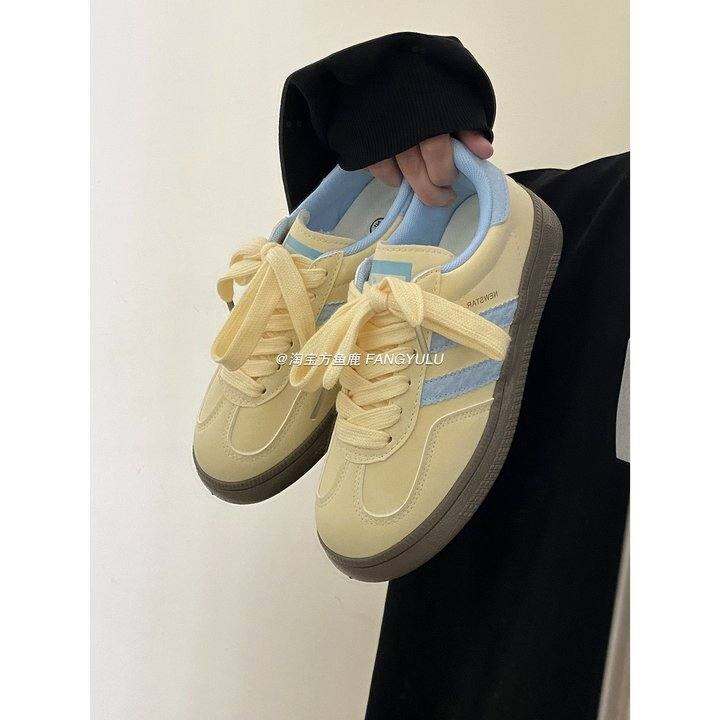 方鱼鹿 早春新款休闲德训鞋女款2025韩版百搭chic系带平底板鞋ins