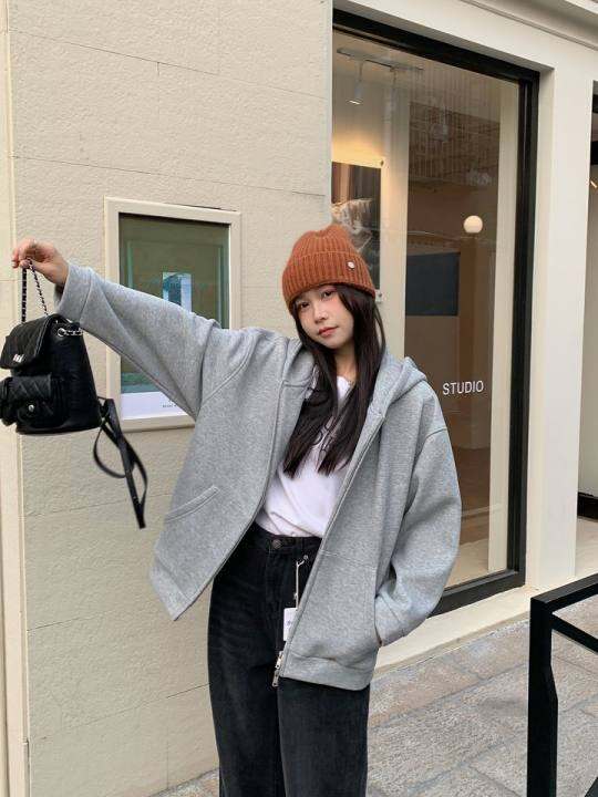 MH 加绒大板开衫运动卫衣显瘦连帽外套上衣拉炼百搭女高级感加厚