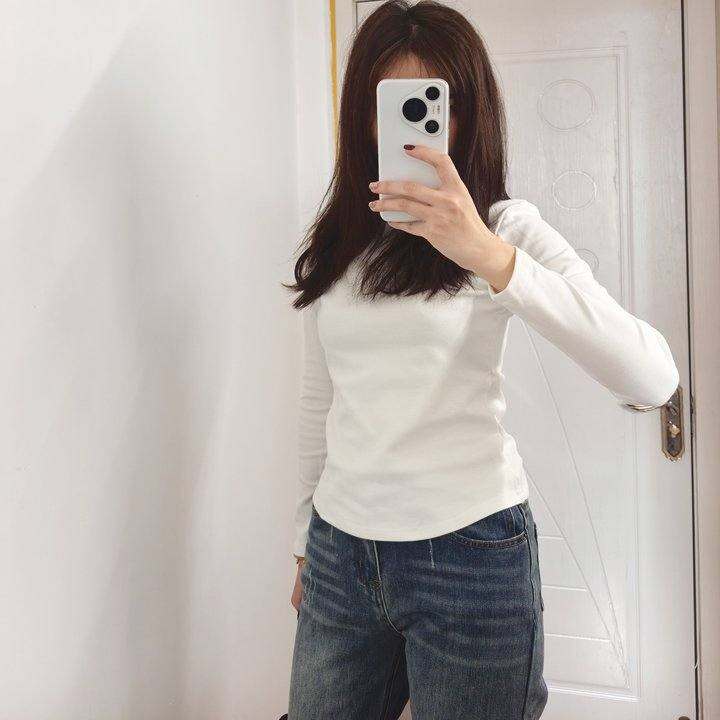 MH 极简风圆领磨毛内搭外穿长袖T恤女修身显瘦打底衫基础款上衣