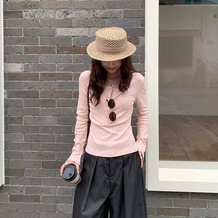 【美惠定制】云感甜豆 特种高品雪花棉修身长袖打底衫亨利领上衣