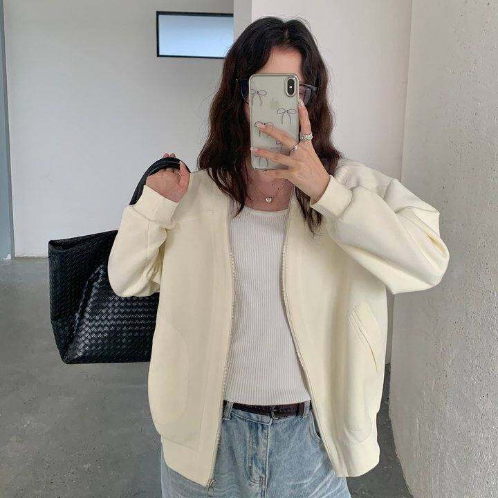 【美惠定制】哈苏线V领卫衣拉链外套女士宽松长袖简约休闲开衫