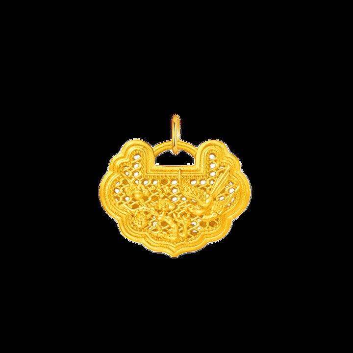 黄金喜上眉梢锁包吊坠镂空喜鹊宝宝足金999梅花福锁金锁项链纯金