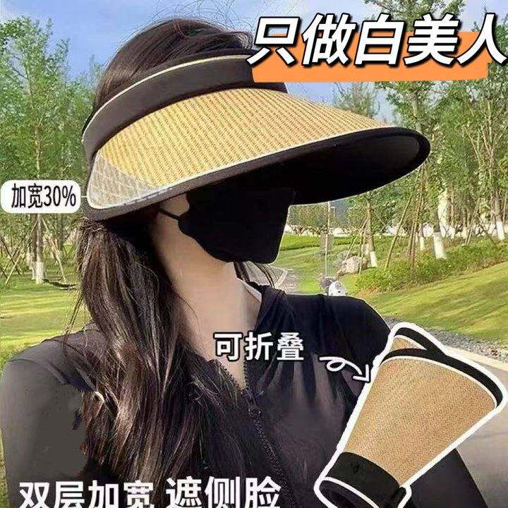 新款可折叠防晒帽女夏季防紫外线户外黑胶草帽遮阳帽骑行太阳帽子