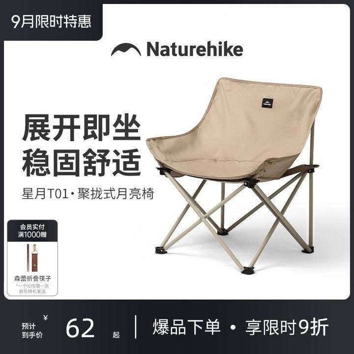NATUREHIKE月亮椅 可折叠户外露营椅 加宽加高露营躺椅 便携式露营用椅 卡其色加高椅面款