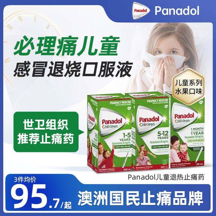 进口Panadol儿童退烧药必理痛香港婴儿感冒药糖浆口服液止痛药