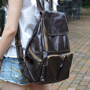 邦妮 外贸原单欧美复古头层牛皮女式油蜡皮真皮双肩包女开学书包