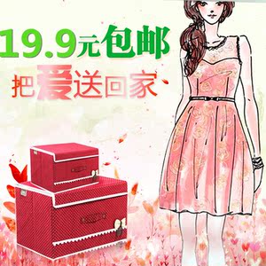 可折叠有盖创意蝴蝶结收纳箱百宝箱 内衣裤收纳盒整理箱 两件套装