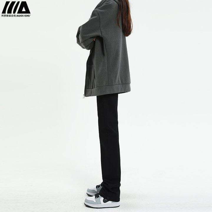 窄版直筒牛仔裤女秋冬加绒裤子2024新款高腰显瘦小个子阔腿拖地裤