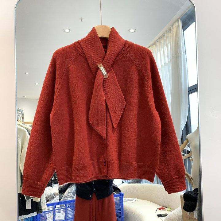 高品质围巾毛衣女2024原版秋冬高级宽松遮肉百搭重工针织衫