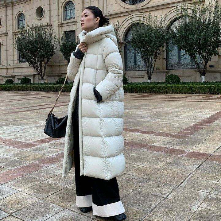 NEIHE内赫日韩简约休闲长款高级感90白鸭绒过膝长款羽绒服女冬季