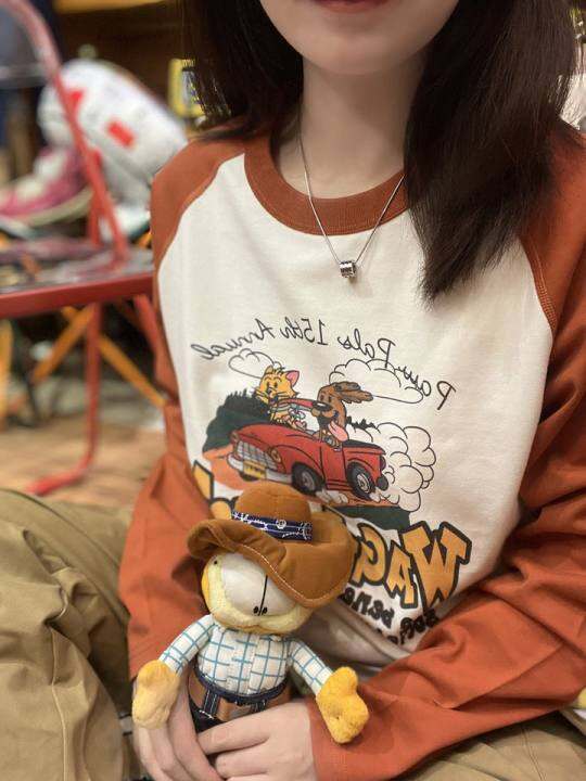 美式复古 vintage 可爱小猫开车 插肩拼色重磅纯棉男女情侣T恤