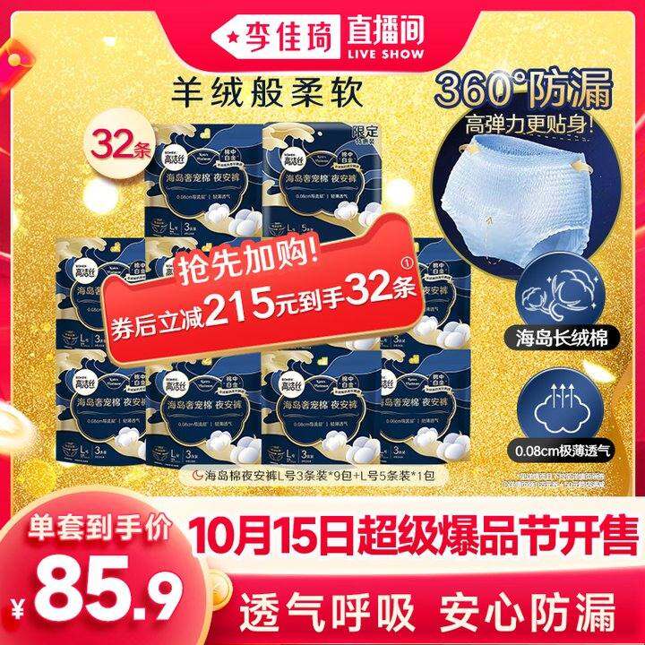 【加购10月15号李佳琦超级爆品节】高洁丝海岛棉夜安裤卫生巾防漏
