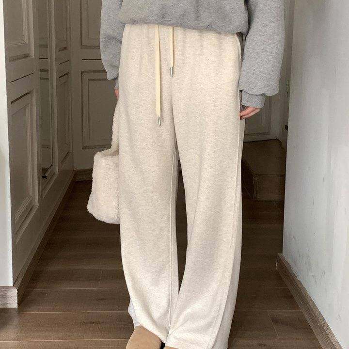 美惠定制 人字纹醋酸羊毛裤加厚显瘦宽松垂感保暖毛呢拖地裤女