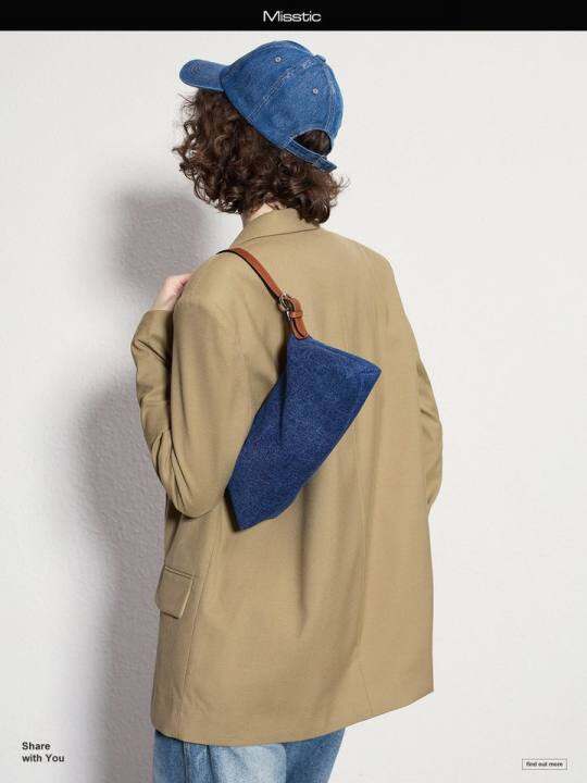 Misstic 牛仔很忙 复古小众牛皮拼接法棍包单肩斜挎手提腋下包女