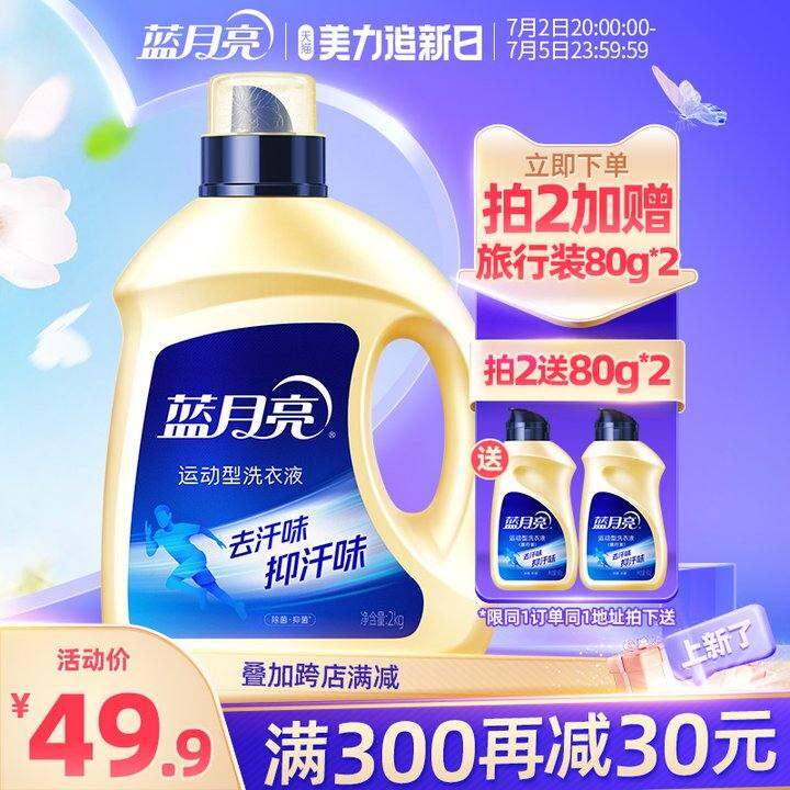蓝月亮洗衣液除菌去汗味持久留香男士除菌机洗2kg瓶运动服去汗味