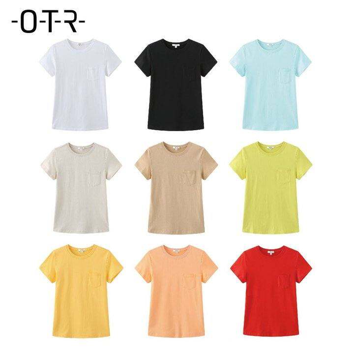 OTR女装糖果纯色新疆棉短袖T恤女圆领修身口袋情侣装上衣W221V073