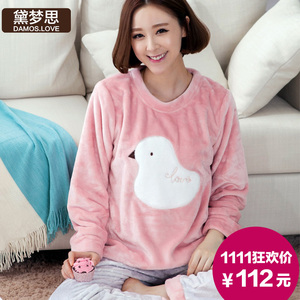 秋冬季加厚珊瑚绒睡衣女冬长袖加大码休闲可爱法兰绒家居服女套装