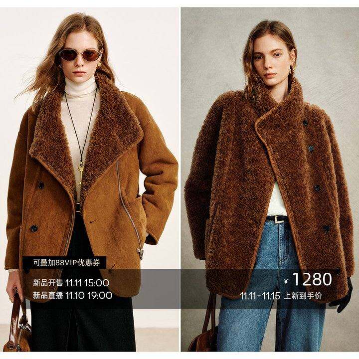 COKEYA/太妃榛果~琎口美利奴羊毛双面穿皮毛一体翻领皮草外套女冬