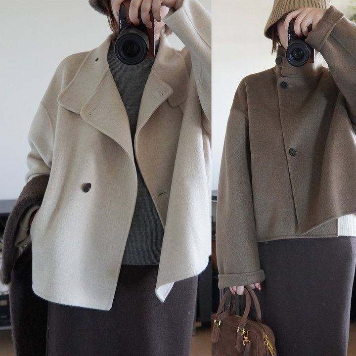 小山羊绒立领短款双排扣大衣简约